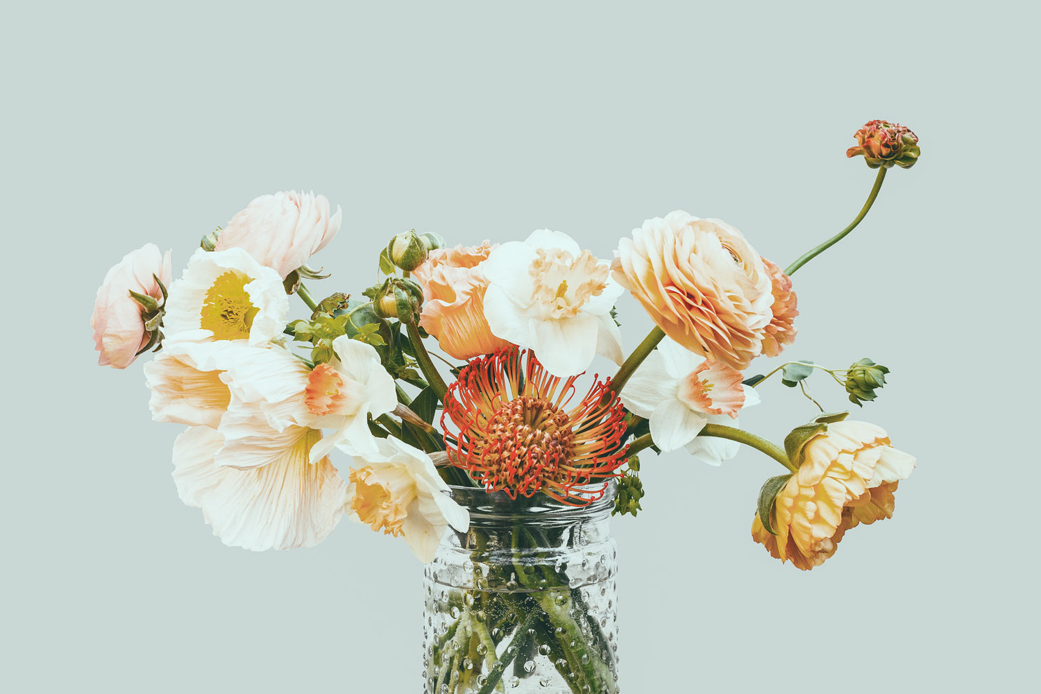 Me acerco al arreglo floral como un arte, tratando las flores y los helechos como piezas para un collage escultórico. Cada cliente tiene una visión diferente y soy meticuloso en darles vida a cada uno.